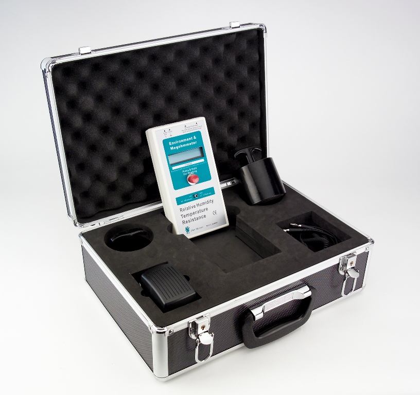 and described in “Ohms”. A Surface Resistivity Meter is used to take these electrical measurements on all types of surfaces and materials, and the results are displayed in the Decade Scale.  Most meters will display results using colored LEDs that brighten according to each decade.  These measurements are important in ESD control because this is how to classify a material as Conductive, Dissipative or Insulative.
